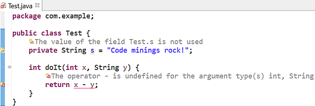 You can see error, warning, and info problem markers inline in text editors supporting code minings by setting