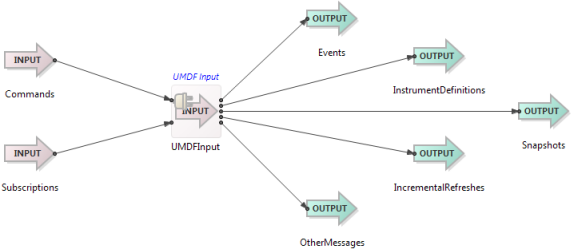 Converts incoming market data FAST messages to tuples and sends them to the application. The adapter routes tuples from different message types (snapshot, incremental updates, and so on) to dedicated output ports.