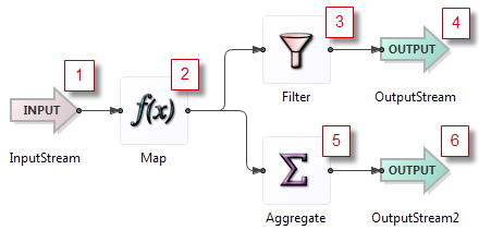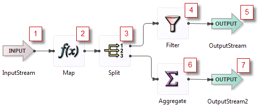 The tuple then passes through the Aggregate operator to the output stream, steps 8 and 9.