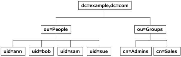 ldap.example.comidentifies exactly one server. In LDAP, a distinguished name is fully qualified identifier containing the comma-separated steps from the principal up to the top of the directory information tree. - DC