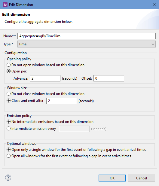 dimension with a timestamp field, or a predicate dimension with an expression such as lastval( to create a 30-second window.