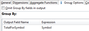 for each of the unique processed values of the Symbol field, and the resulting field in the output tuple is named TotalForSymbol.