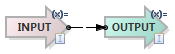 The icons for input and output streams that are used to update dynamic variables are shown with (x)= in the upper right of the icon.