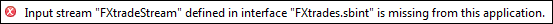 You might base a module on an interface definition and then later find yourself inadvertently removing one or more stream or table components that were based on the interface. Studio reports this as a typecheck error, and places a banner line across the top of the canvas like the following example:
