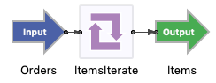 The ItemsIterate operator is configured to Iterate Over the input tuple's Items field without conditions or filters.