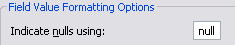 By default, the SB Test/Debug perspective of StreamBase Studio uses the keyword null to indicate a null value. You can specify a different null token by changing the value in the Indicate nulls using field in the > pane of the > dialog.