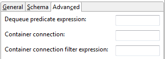 When specifying a container connection in this tab, you can also specify a predicate expression filter to limit the tuples that cross to the destination container. This differs from the Dequeue predicate expression field, which filters all tuples exiting this stream. The container connection filter limits the tuples only on the specified container connection, while dequeuing from the stream in general can proceed independently.