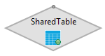 The EventFlow canvas icons for Shared and Placeholder Query Tables are overlaid with decorations to distinguish them from concrete, private Query Tables. When a table is shared, the table within the has a green dot overlay in its lower right corner. If the table is not local to the module, it has a blue triangle overlay in its lower left corner.