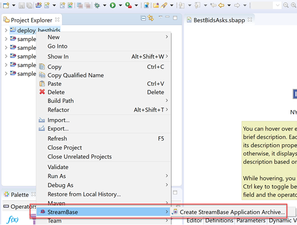 In the Project Explorer view, select the name of your StreamBase Application project.