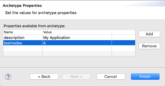 Optional. In the third panel, Archetype Properties, to cut down on the number of test instances created and run, edit the