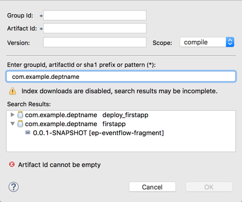 In the Add Dependency dialog, in the Enter groupid... field, enter the first few parts of the group ID of the
