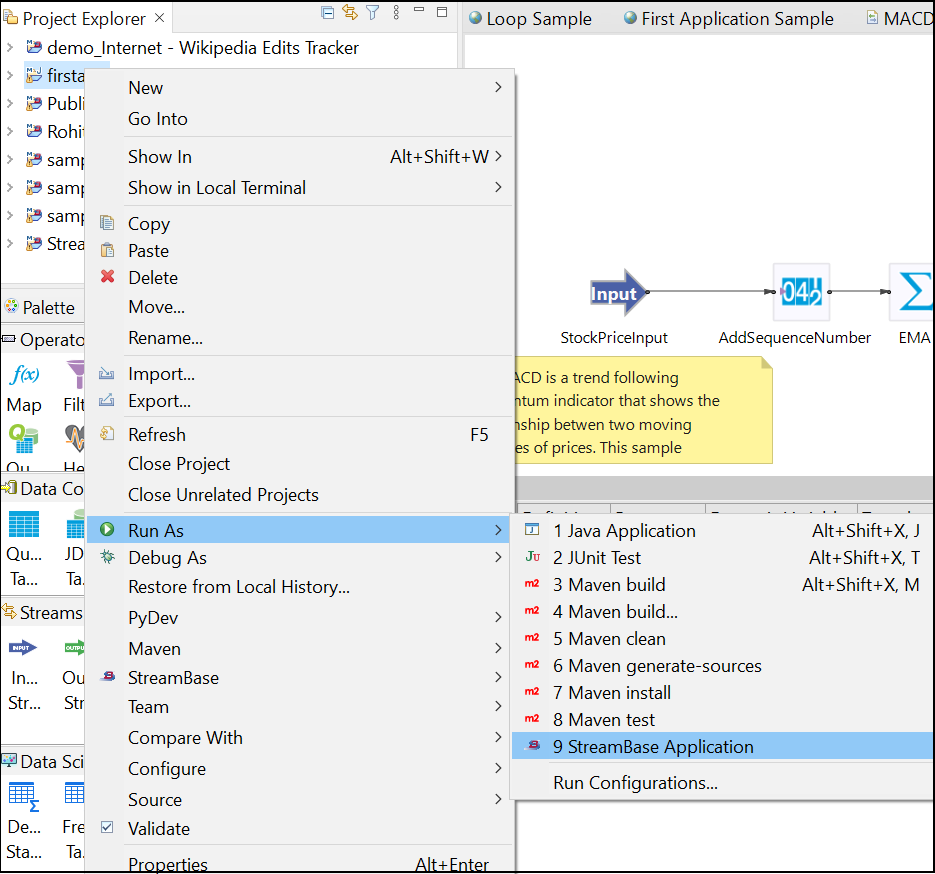 Shortcut: You can run the StreamBase Application directly using the following steps: