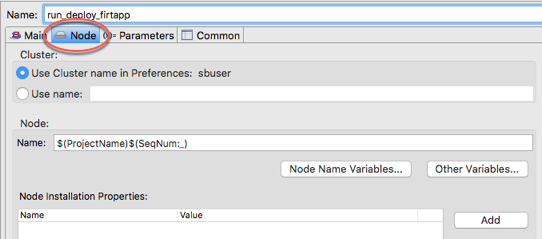 Optional. You can use the Node tab to assign non-default node and cluster names for this launch, and to specify arguments for the node installation.