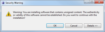 If Eclipse prompts for permission to install the unsigned Studio plug-in files, click .