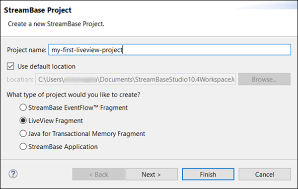 my-first-liveview-projectin the Project name field. Select LiveView Fragment as the project type. Click .