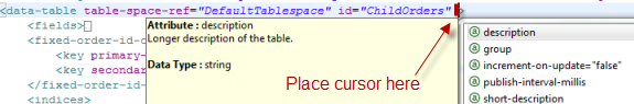 Notice the yellow pane of the content assistance pop-up in the image above. The XML editor provides help text for the currently selected element in the white context assistance pane.
