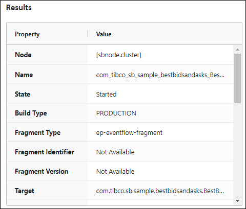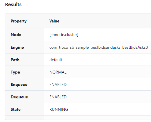 Supply the necessary parameters per command target and click . Results are shown for the TIBCO Streaming product version.