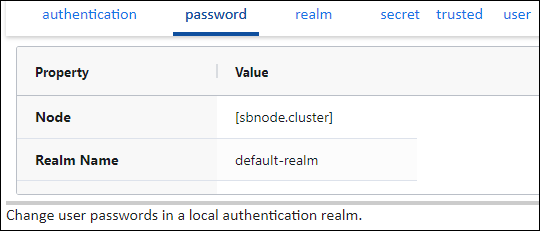 Expand the Security managed entity to drill down to the desired configuration object. As with everything else in the Cluster view, configurable objects will vary greatly depending on the security configurations available in the installed node.