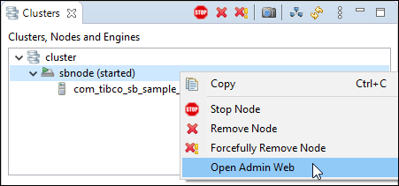 Right-click a started node in the Clusters View and select .