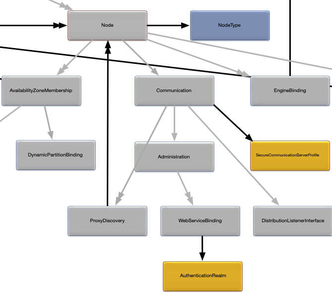 }The Node object defines the configuration for a specific node. Figure 3, “Node relationships” shows the relationships to other configuration objects.