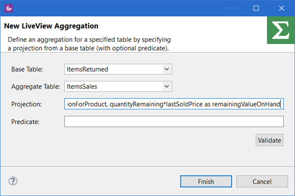 Use the button to test your projection and optional predicate against the Base Table. Click when the validation test passes with no errors.