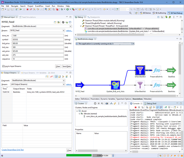 In TIBCO StreamBase® Studio, use the SB Test/Debug perspective to run, test, and debug StreamBase applications.