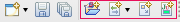 Studio adds four buttons to the standard Eclipse Open-Save-Print toolbar, which is usually found on the far left side of the toolbar row: