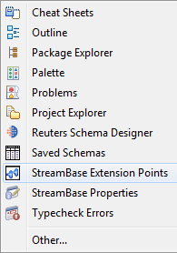 To customize a perspective, select > to define a new perspective that captures your preferences. Enter a new name for a custom perspective. Do not overwrite the default perspectives provided by StreamBase Studio. (If you inadvertently overwrite a default perspective, you can reset it to its originally installed layout and contents with >.)