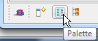 Fast views are docked in the fast view bar, a button bar in Studio's bottom left corner. The following example shows the fast view bar with several view buttons in place and with the cursor hovering over the Palette fast view: