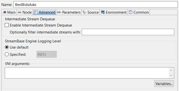 In general, set StreamBase properties with a HOCON configuration file instead of the VM arguments control. Use this feature sparingly, or under the direction of TIBCO Technical Support.
