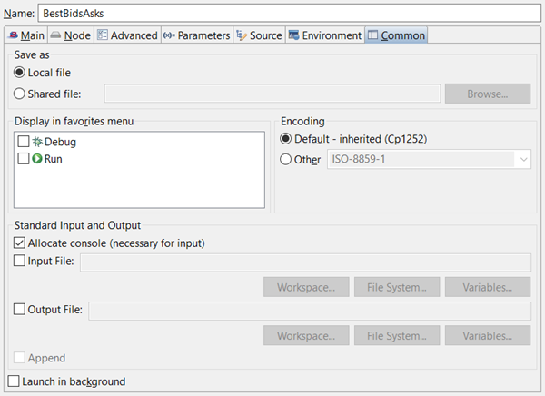 The settings in the Common tab are common to all Eclipse Run Configurations. Use Eclipse Help to learn how more about these options.