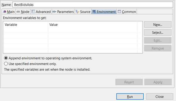 You can select the Use specified environment only control to restrict the launched node's environment settings to those specified in this tab.