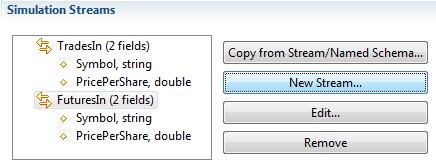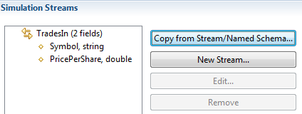 In the second case, the Feed Simulation Editor is initialized with a schema that matches each Input stream you selected, bypassing the usual first step of declaring schemas for the simulation.