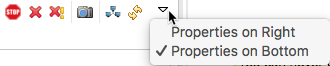 The drop-down menu provides an option to locate the Properties panel on the right of the Clusters, Nodes, and Engines panel or on the bottom.
