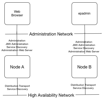| epadmin | Node administration | SSL using IPv4 or IPv6 | Randomly assigned valid free port per node. |