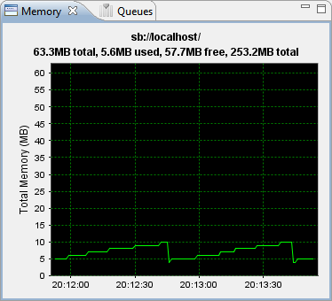 Every time you run, debug, or trace an application in Studio, the SB Manager perspective automatically connects to the running server launched from Studio and displays performance statistics.