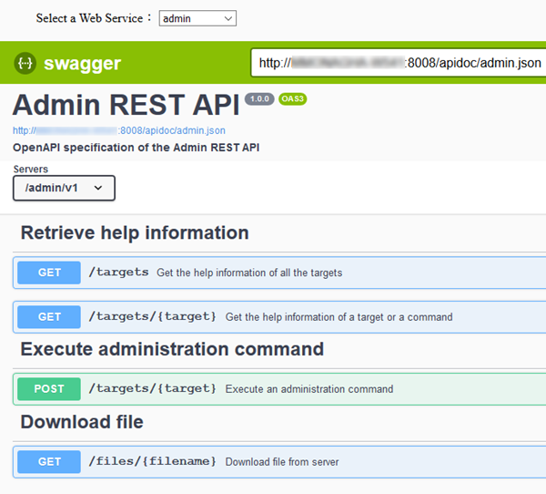When a web service starts, it publishes a REST endpoint. The REST API page then presents the help UI for your node. At the top of the API page, select one of the following supported web services from the dropdown list. Note that web service support varies for nodes running EventFlow or LiveView fragments:
