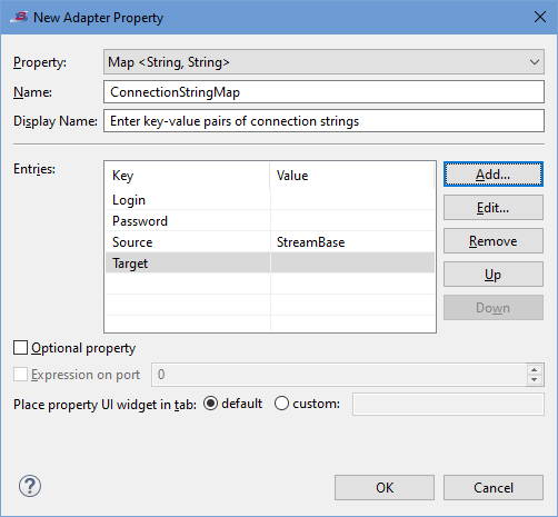 Click Add to add a property for this adapter, following the guidelines in Adapter Property Dialog Fields.