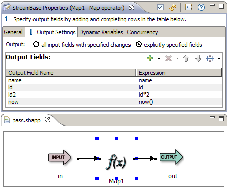 Before you can use the client, of course you need a StreamBase application, such as the simple one illustrated here: