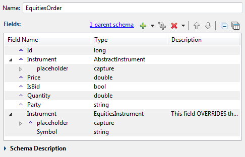 the parent with a local definition. Thus, the EquitiesInstrument named schema overrides the AbstractInstrument named schema because it uses the exact same field