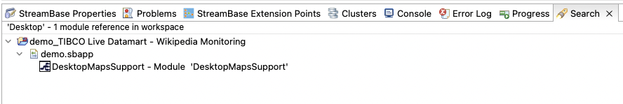 For example, you have a module named Desktop, and it is used inside of demo.sbapp in a module reference named DesktopMapsSupport. If you search search string
