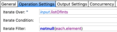 | Iterate Over | Required. The name of a field of type list in the incoming stream, or an expression that resolves to a value of type list. | Simple expressions whose value is of type list. |