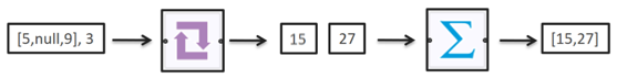 filters the null element; and then it multiplies 9 times 3 and emits 27. The