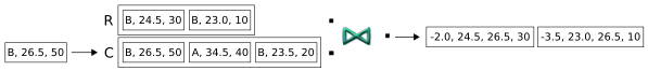 In the following example, the join range is 120: the value in Time_C can be 60 less than the value in Time_R, and as large as 60 greater: