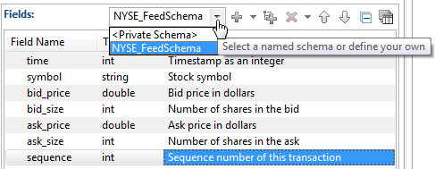IncomingTuple, has the data type tuple, and its fields are defined as an instance of theNYSE_FeedSchemanamed schema.