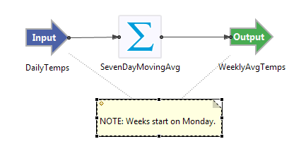 To see the contents of a Note in the EventFlow canvas, hover your cursor over its icon. The Note text is displayed in a tooltip box.
