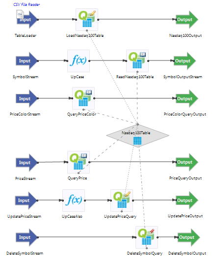 operatorssample group includes a CSV file,ResourceFiles/NASDAQ100.csv, in the correct format for use as an initial table loader. Use this file with theQuery.sbappmodule, replacing the CSV File Reader adapter currently in place. -