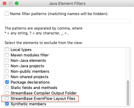 Clear the checkbox for the StreamBase EventFlow Layout Files entry.