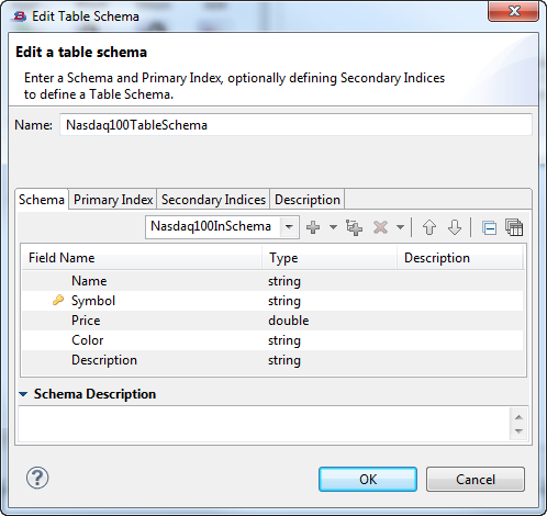 The following example shows the Edit Table Schema dialog.