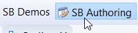 In Studio, make sure that you are in the SB Authoring perspective, which presents the views most commonly used for editing EventFlow modules. If you are in another perspective, such as SB Demos, click the button in the Perspective bar (typically in the top-right corner of the Studio window):